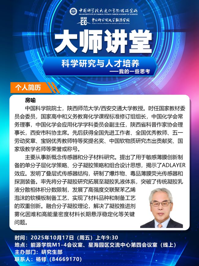 关于举办“大师讲堂”——“科学研究与人才培养——我的一些思考”的通知