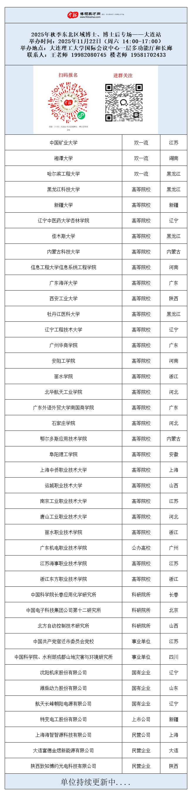 参会单位:各地区双一流、高等院校、科研院所及企事业单位等组团招聘