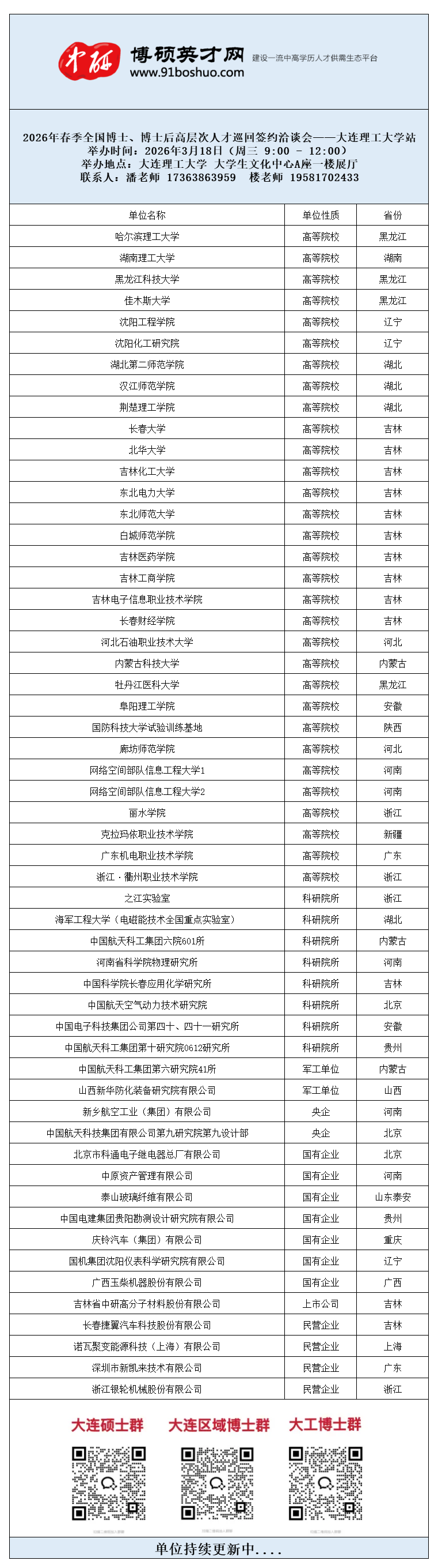 参会单位:各地区双一流、高等院校、科研院所及企事业单位等组团招聘